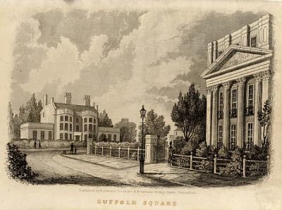 The oldest building at the time, Gallipot Farm, was located to the north-west of Suffolk Square. The name “gallipot” may refer to a small glazed pot once used by apothecaries for medicines, confections, or similar preparations. In 1694 the house was rebuilt and renamed Gallypott Hall.