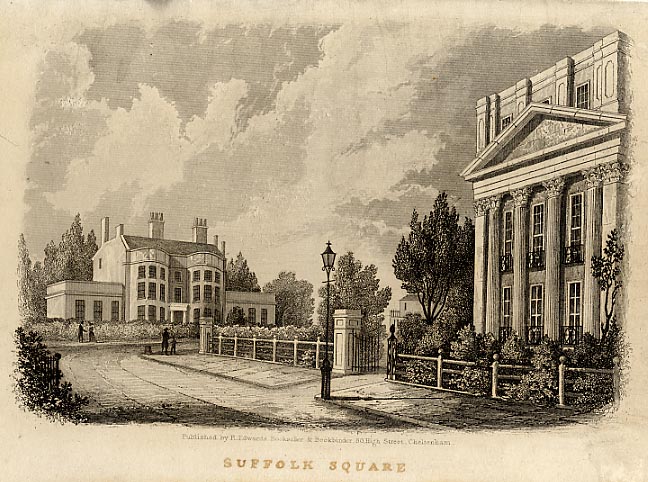More than half a mile south of the original market town of Cheltenham, the Suffolk estate was developed by a local hotelier named James Fisher, from about 1823, on farm land which the 15th Earl of Suffolk had bought from the Delabere family in 1808. The fields had names such as Home Piece, Home Close and the Lypiates. Part of the Suffolk estate may have been built on the former “Old Park” which was documented as early as 1606.