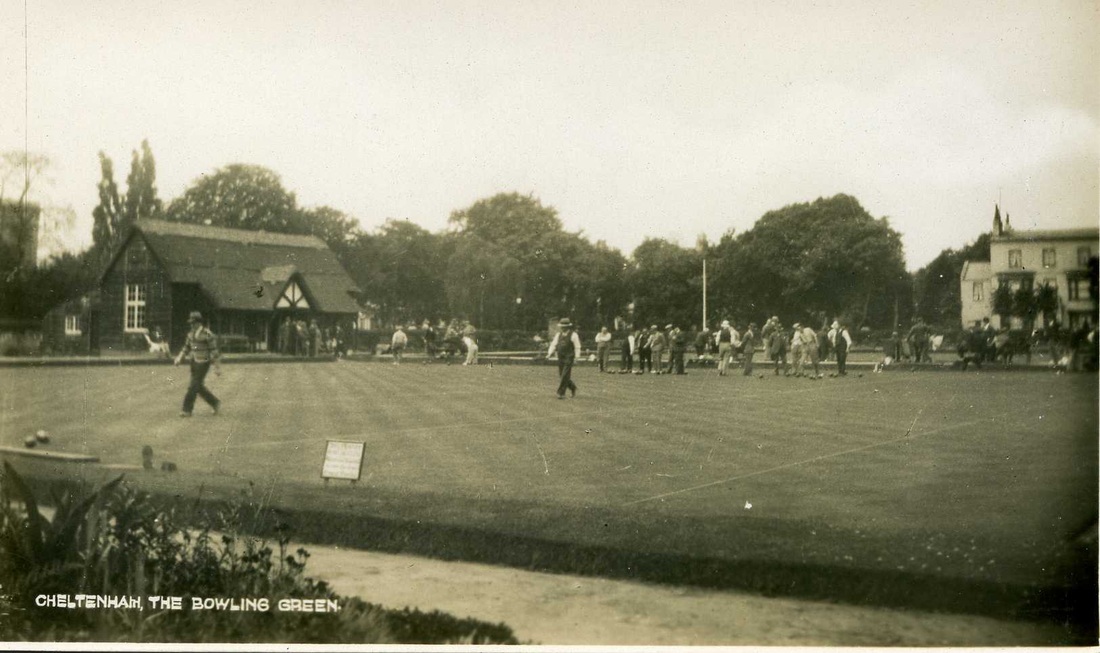 At the heart of this residential area is Suffolk Square. Many of the buildings around the square were designed by the architect Edward Jenkins. The central garden belongs to Cheltenham Bowling Club, which was founded in 1883 but only relocated here from the Winter Gardens in 1918. Surprisingly, the square is labelled as the “Ashburne Bowling Green” in the Old Town Survey Map of 1855-57, however it seems likely that this annotation was added later. The land on which the green was laid out in 1917 was until then a market garden called Home Field; the name was probably a throwback to the time when it formed part of Gallipot Farm. The original rustic style club house, called the Unwin Pavilion, burned down in 1955 and was replaced by the current building.