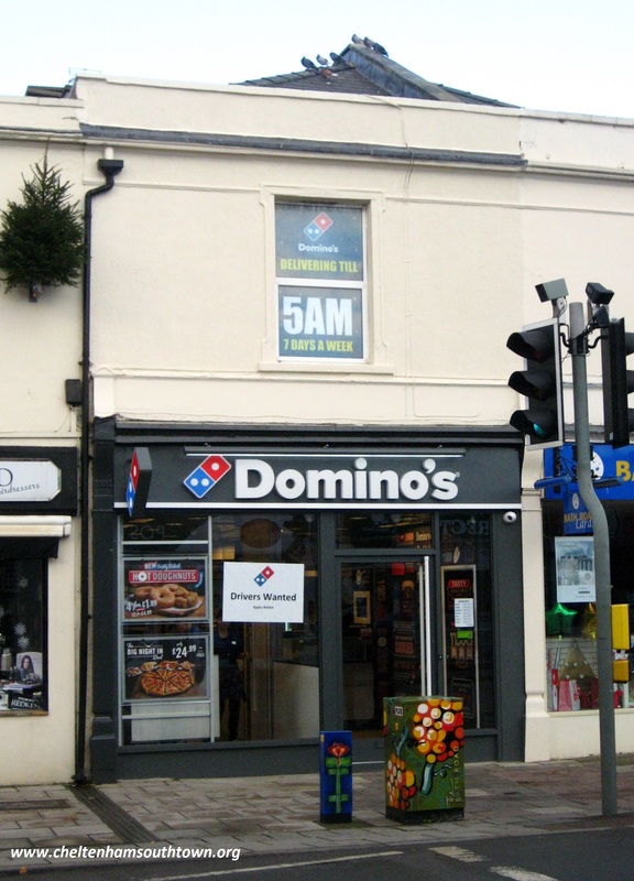 Later in the 20th century an amusement arcade called Top Slots was located here, since when it became a Chinese takeaway called Silk. By the start of the 21st century it had changed to the T&M Chinese Takeaway until, in October 2014, it changed to Dominos takeaway Pizza. This company was founded in 1960, in the USA, and came to Britain in 1985, where it now has more than 500 outlets.