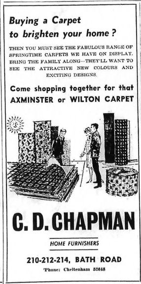 Mr C.D. Chapman bought Miss Shills shop for his furniture business and by the mid 1960s had acquired the property next door and then the end shop, making it one of the largest in Bath Road. It is now part of Lee Longlands.