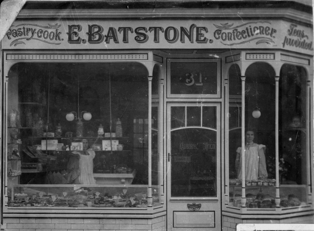 Ernest and Frieda were married at Bethesda Chapel in 1894 and celebrated their Golden Wedding in 1944. Ernest came to Cheltenham from Bath and began his working life as a pastrycook and confectioner, starting his own business in 1901. ​In addition to this shop, by 1914 the Batstones also ran the Cleeve Hill café. Mr Batstone’s bakery in Bath Road was famous for its crumpets.