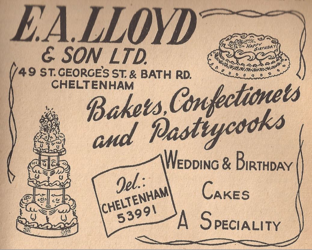 During the Second World War Mr Lloyd was glancing through the trade magazine “The British Baker” when he saw advertised a partnership in a bakery in St George’s Street, Cheltenham. He moved his family here and the partnership was formed with Mr Gray in 1943.