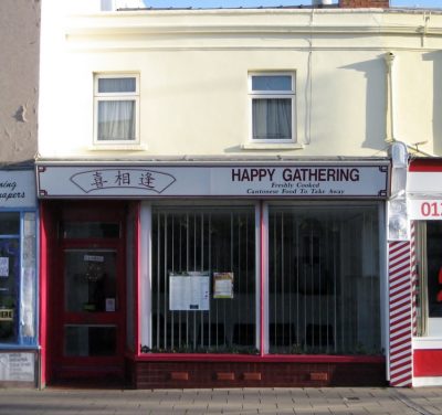Since the 1970s the shop has been a Chinese takeaway, initially called the Chop Suey Inn and since before the beginning of this century known as Happy Gathering.