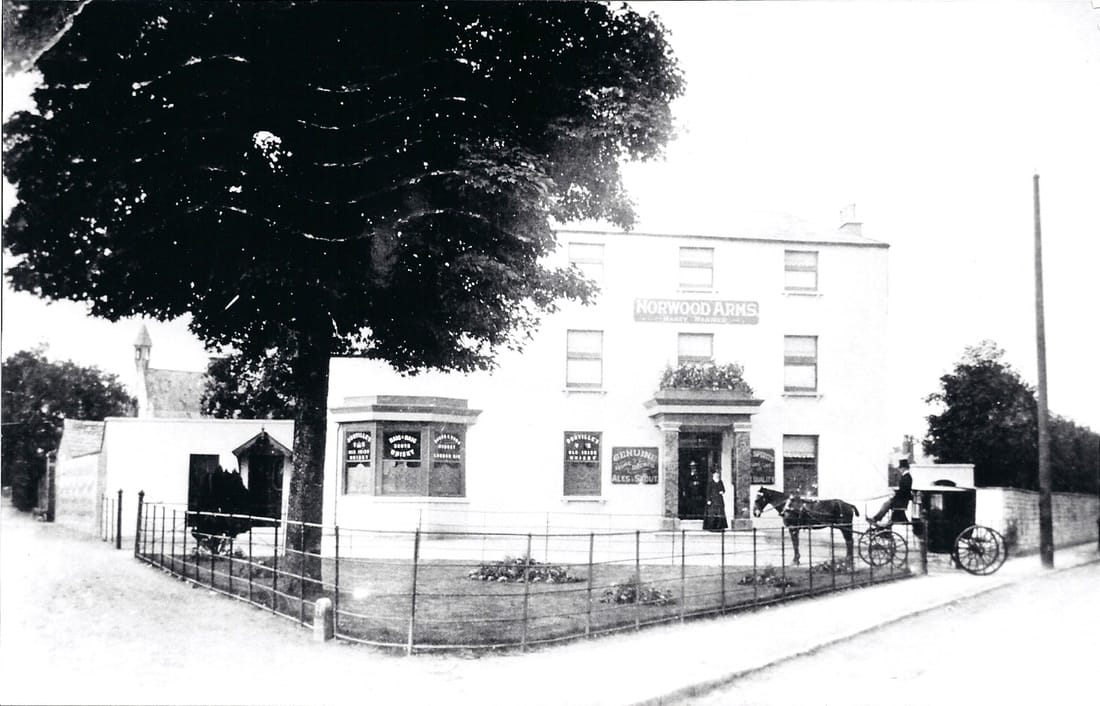 The Norwood Arms had stables throughout the 19th century and in 1882 John Smith, a haulier from Prospect Place, was charged with having stolen a truss of hay, a bundle of straw and a dandy brush (for horses) from the yard. He had a previous criminal record and was convicted and sentenced to 7 years penal servitude.