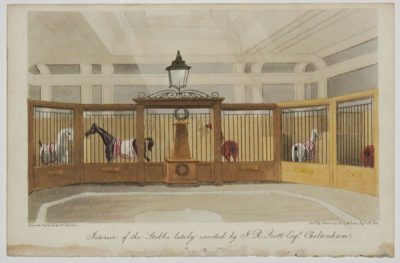 Although apparently not quite completed, Thirlestaine House came up for sale in February 1831, when it was described as a “splendid freehold mansion”, on the outskirts of Cheltenham, having cost Mr Scott the almost unimaginable sum of nearly £100,000. The house was said to have a grand suite of 5 rooms connected by massive double doors and a kitchen and cellars similar to those at the Royal Pavilion in Brighton. Whatever circumstances necessitated the sale, Mrs Harriett Scott died in April of that year, followed 3 weeks later by their 2 year old daughter Izabel and the distress must have been considerable.