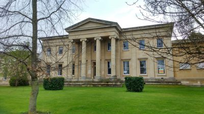 The mansion, which originally consisted only of the central portion, has been described as the most substantial private house ever built in Cheltenham. It is in the Neo-Classical style, the most notable feature being the grand portico with four fluted Ionic columns and a pediment. David Verey, writing in ‘The Buildings of England’, stated that Scott had brought the Grecian style of architecture to Cheltenham in its most learned style.