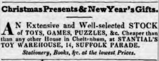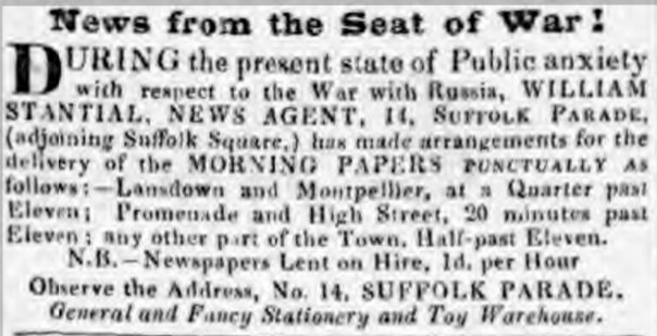 Mr Stantial appears further up the street in 1855 as the proprietor of the Porter Stores at 8, Suffolk Parade.