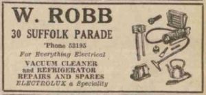 The trade changed again in 1948 when Mr E.H. Kirk set up as an electrical goods dealer. Mr William Robb took over this business in about 1950.
