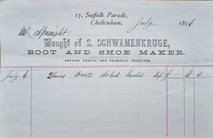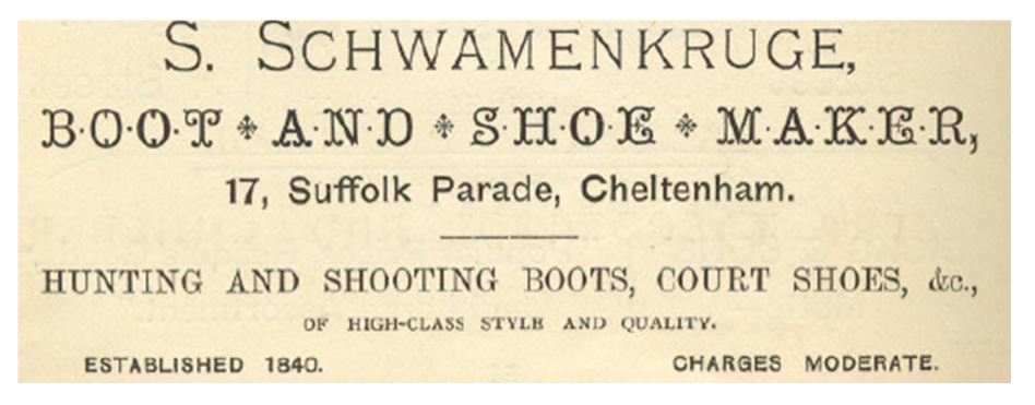 Then came a bootmaker called Stephen Schwamenkruge, who relocated his business here around 1860, although it had been founded 20 years earlier, and began a trade that was to last until at least 1930.