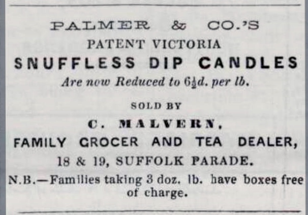 By 1850 the business had transferred to Mr J.B. Stevens but within 10 years Mr Charles Malvern was the grocer here and remained so until the mid 1880s. He was an agent for The One Wine Company, which claimed to be the only bottlers using Imperial measures (pints and quarts) and for W. & A. Gilbey, Wine Importers and Distillers.
