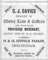This shop has the distinction of having been in the same trade longer than any other in Suffolk Parade. From at least 1838 it was a grocer’s, beginning with Mr John Lapidge, grocer and tea dealer. He was originally just in the corner shop at number 19 but at some time the two premises were combined.