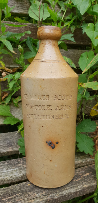 By 1837, just a few months before Queen Victoria was crowned, the Inn changed hands and was taken over by Charles Scott, who advertised well-aired beds and good stabling for his guests’ horses. He sold beer in glazed stoneware bottles, such as the one illustrated here, which was a porter bottle (photo courtesy of Steve Lawrey).