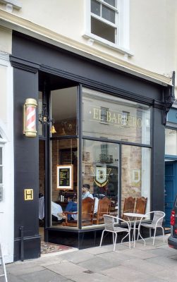 Formerly Balthazaar Hairdressers, these premises were taken over in July 2017 by Paco and Carolyn Delgado to become El Barbero, a gentlemen’s barber shop. Paco, who comes originally from Gran Canaria, has lived and worked in Cheltenham since 1982. He had his first salon in Cambray Place, before moving to 154 High Street and then to Montpellier. He also owns the ladies hairdresser nearby in Suffolk Road that bears his name.
