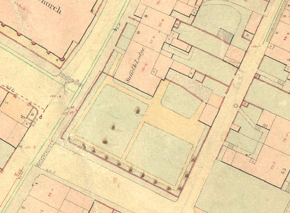 Suffolk Lodge in 1857. Detail from the Old Town Survey.