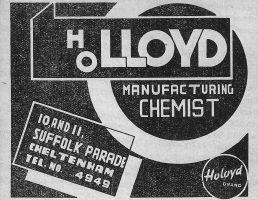 Then, during World War II, Mr Lloyd appears to have had a change of mind and the shop returned to its earlier function by becoming H.O. Lloyd (Cheltenham) Ltd, manufacturing chemists. By about 10 years later, although the residential quarters above the shop were still occupied by Mrs Lloyd, the chemists had once more gone.