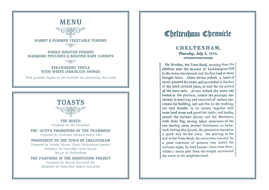 They also discovered that the tramroad was opened on the 2nd July 1810 and found a report from the Cheltenham Chronicle of 5th July, 1810 talking about a dinner that was held at The Plough Hotel in celebration for 50 local gentlemen ‘of the first respectability!’.