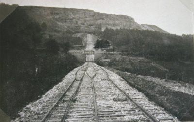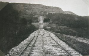 In 1924 a new railway was installed on a different route, giving access to the national rail network at Charlton Kings station. It was intended to serve a much enlarged quarrying operation and ran up to limekilns erected on the hill. The photograph opposite shows this line and the Daisybank road bridge. The company failed and closed in 1926.