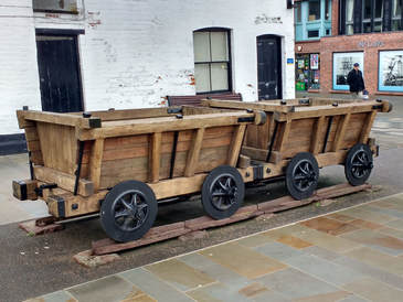Reproduction tramroad wagons mounted on plateway rails at Gloucester Quays
